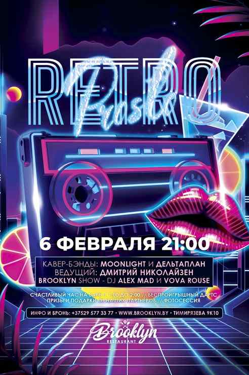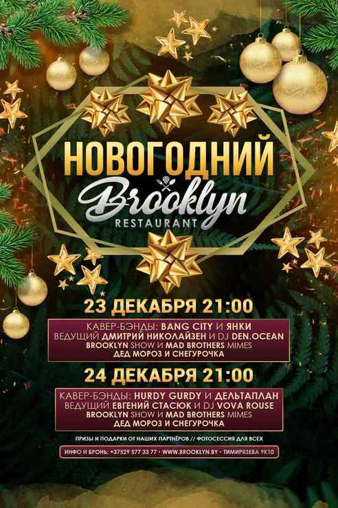Развлекательная программа «Бруклин» включает запоминающиеся вечеринки различных форматов, живую музыку, шоу-программы, акустические концерты и динамичные сеты от талантливых артистов. Каждое мероприятие обещает стать незабываемым праздником.