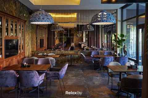 Меню ресторана предлагает богатый выбор блюд европейской, белорусской, средиземноморской и итальянской кухни. Здесь каждый найдет что-то по вкусу, включая эксклюзивные блюда от шеф-повара Джузеппе Конти. Ассортимент включает в себя медальоны, стейки, средиземноморские закуски, свежие салаты и разнообразные сеты, поражающие своим вкусом и оформлением.