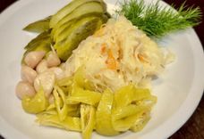 350 г • Квашеная капуста, маринованный огурец, чеснок, красный перец и свежий укроп