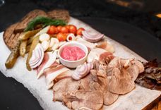 400 г • традиционный набор закусок: язык говяжий с хреном, микс солений, сало слабого посола