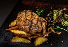 400 г • с медово-горчичной корочкой и картофельным пюре со шпинатом