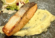 270 г • с соусом песто и кортофельным пюре со шпинатом