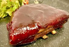 340 г • с картофельным пюре со шпинатом и вишнёвым соусом