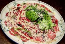 Карпаччо из говядины с трюфельным маслом, рукколой и ореховым соусом