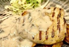 Гриль-стейк с соусом из лесных грибов и креольским картофелем